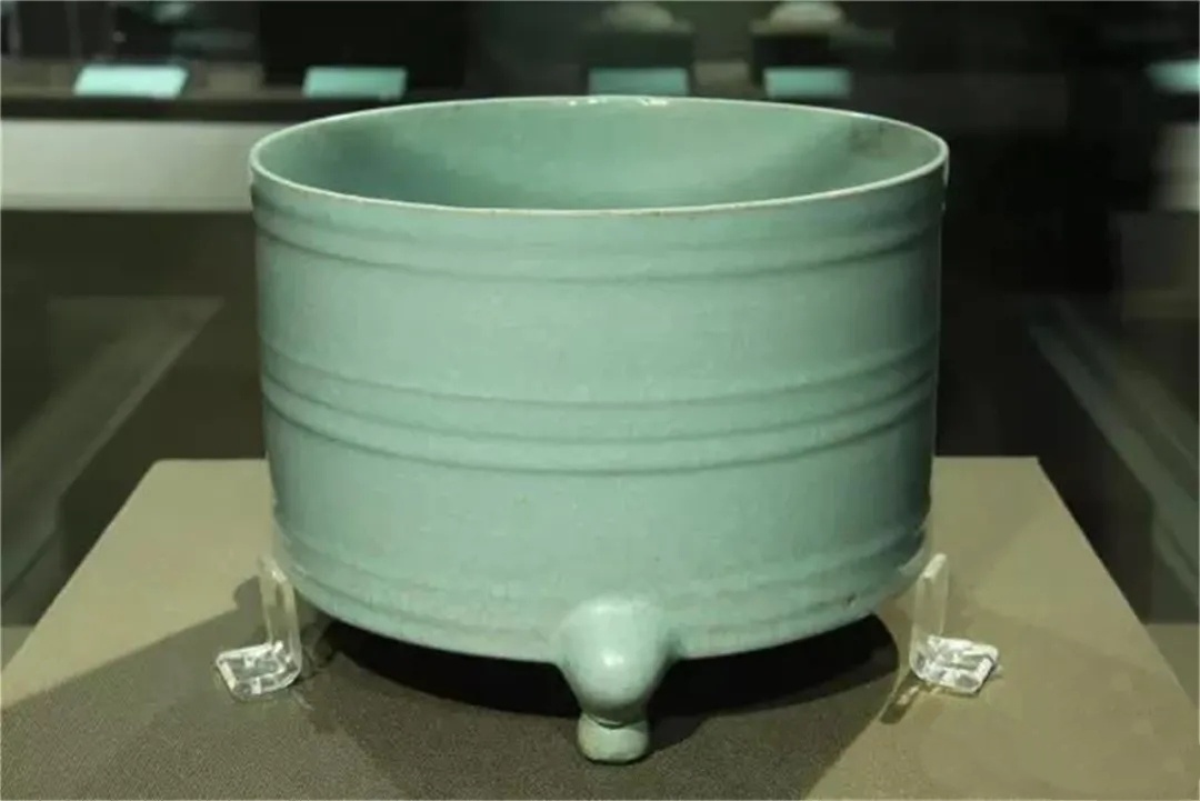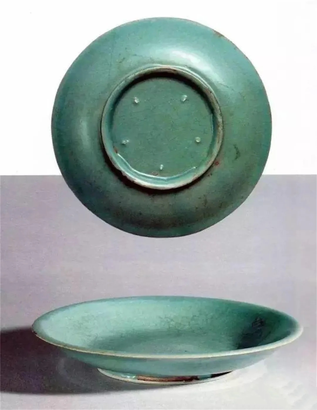 (北宋清凉寺汝瓷呈现的所谓的“肉红色”或“铜骨”只是一种偶然现象,而且也只会出现在标准的“天青色”釉上。一种是出现在凹凸不平的釉面上,如上图1汝窑莲花温碗,另一种是出现在器物旋纹上凸的釉面上,如下图2三足旋纹尊。——编者注)