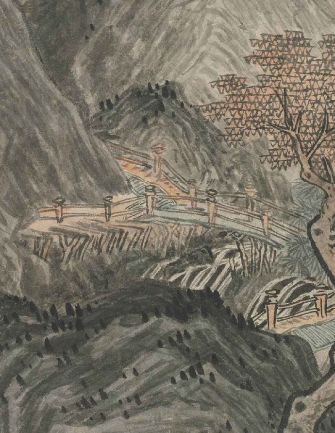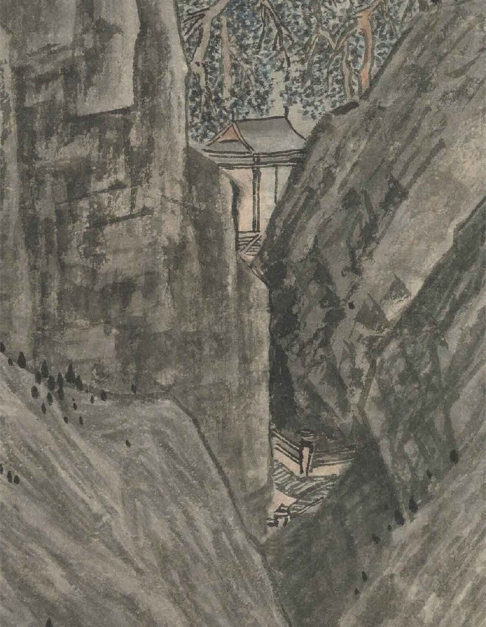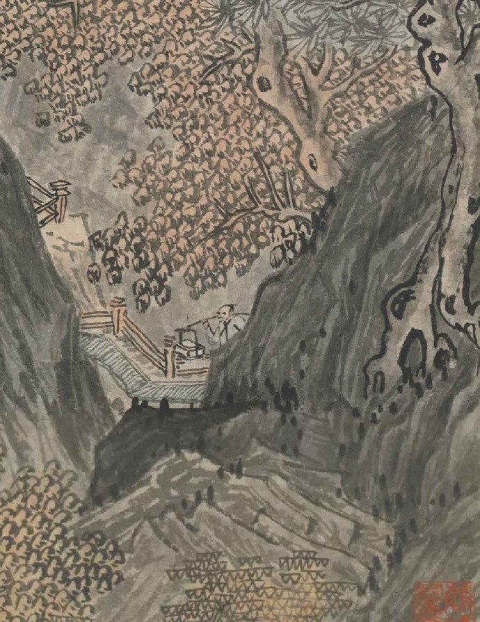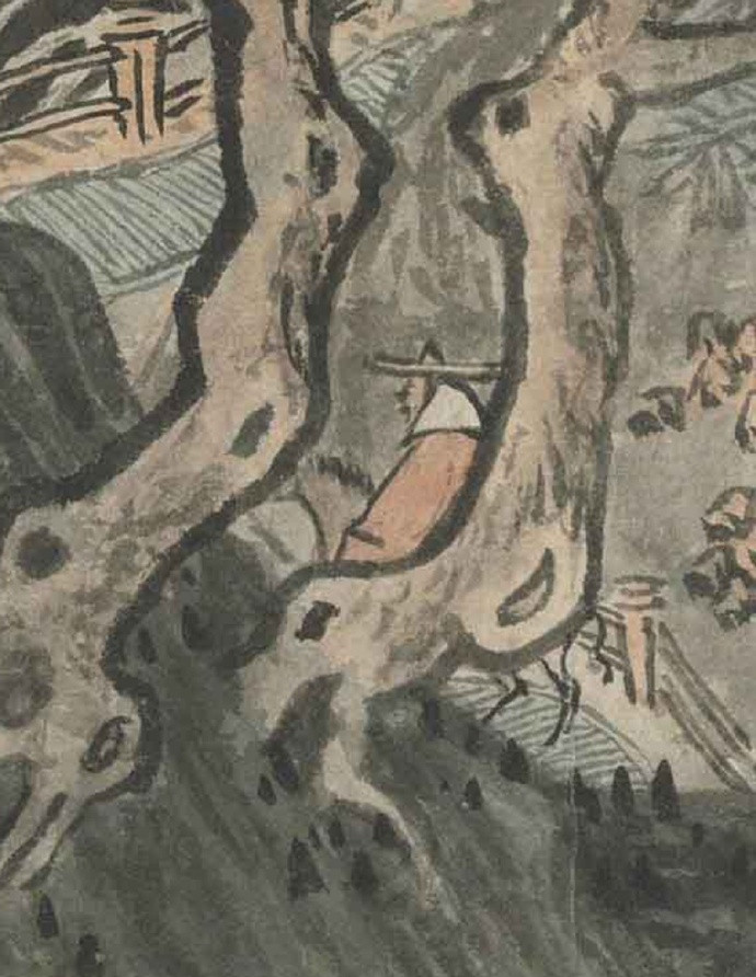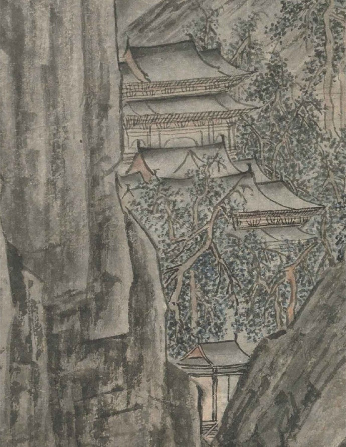 明 唐寅 《华山图》 立轴,纸本,浅设色,116.4×41.4cm,美国克利夫兰艺术博物馆藏。此幅是唐伯虎三十七岁时所作,伯虎一生没去过华山,此画当是想象中之景,表达其想壮游南北的宏愿。笔法上还是用的李唐遗法而加以书写化,画史称其足任李唐偏师,此言不虚。