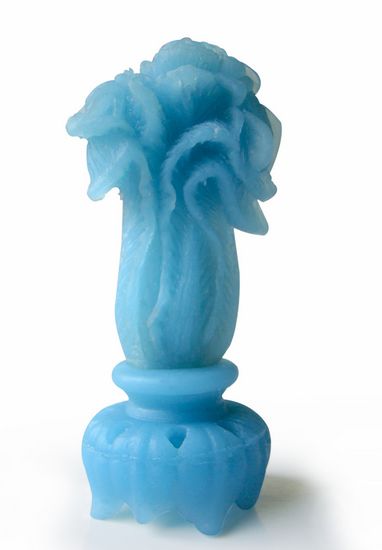 清乾隆40年(公元1775年)的一首名为《题和阗玉镂霜松花插》的御制诗中,作为帝王的清高宗,从以包心叶菜为造型的花插,联想到以杜甫诗中园吏不识嘉蔬之隐喻为艺谏的传统,而有所警惕;诗云:“和阗产玉来既夥,吴匠相材制器妥。仿古熟乃出新奇,风气增华若何可,菜叶离披菜根卷,心其中空口其侈。插花雅合是菜花,绯桃雪梨羞婀娜,民无此色庶云佳,艺谏或斯默喻我。”