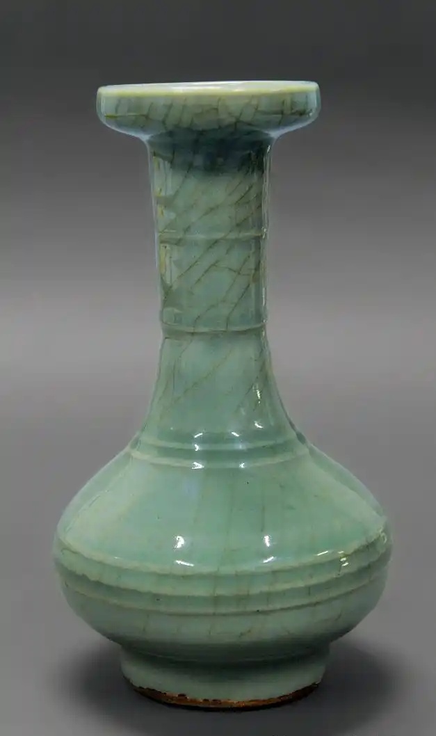梅子青釉色以灰为基调,灰中带绿、见蓝,釉层肥如凝脂,釉面温润莹澈,其美难以一眼看穿,其韵难以言状。