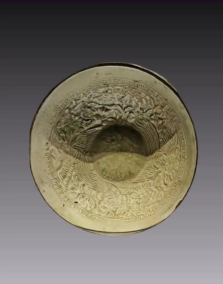 这件瓷器采用覆烧工艺,口沿无釉,形成芒口,这是为了提高产量和节省烧制空间,但口沿处相对粗糙,通常会用金属镶边进行装饰。釉水肥腴玉润,色泽白中泛青闪蓝,介于青、白二色之间,具有天然青白玉的效果,釉质莹润,积釉处呈水绿色,釉面开碎片纹。运用印花技法在碗的内壁装饰双凤纹等图案。先将图案刻制在模具上,然后在坯体未干时将模具压印在坯体上,形成凸起的花纹。印痕起伏明显,清晰醒目,线条流畅,图案立体感强。