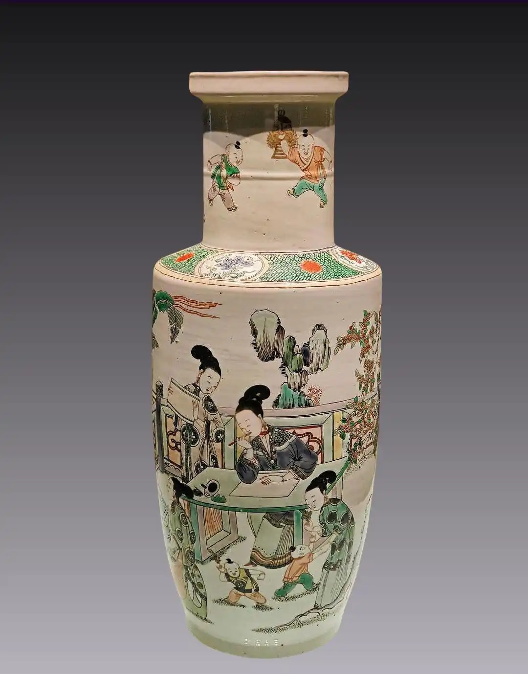 清康煕时期,瓷器制作达到高峰,古彩琴棋书画人物图瓶作为当时的一种艺术品,展现了高超的绘画和烧制技术。瓶身人物栩栩如生,反映了当时社会风貌的审美情趣。作为康煕时期瓷器代表作之一,古彩琴棋书画人物图具有较高的历史的文化价值。