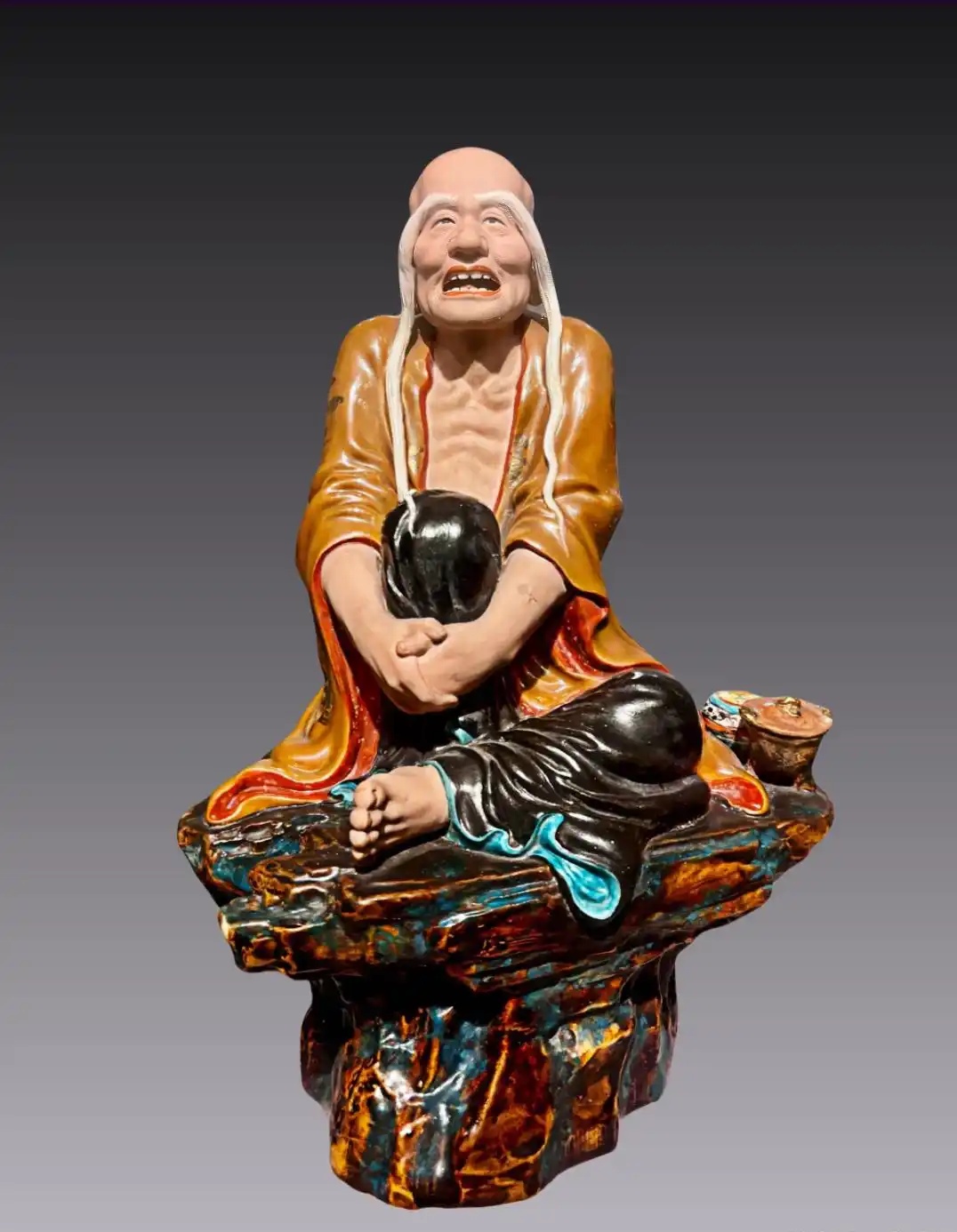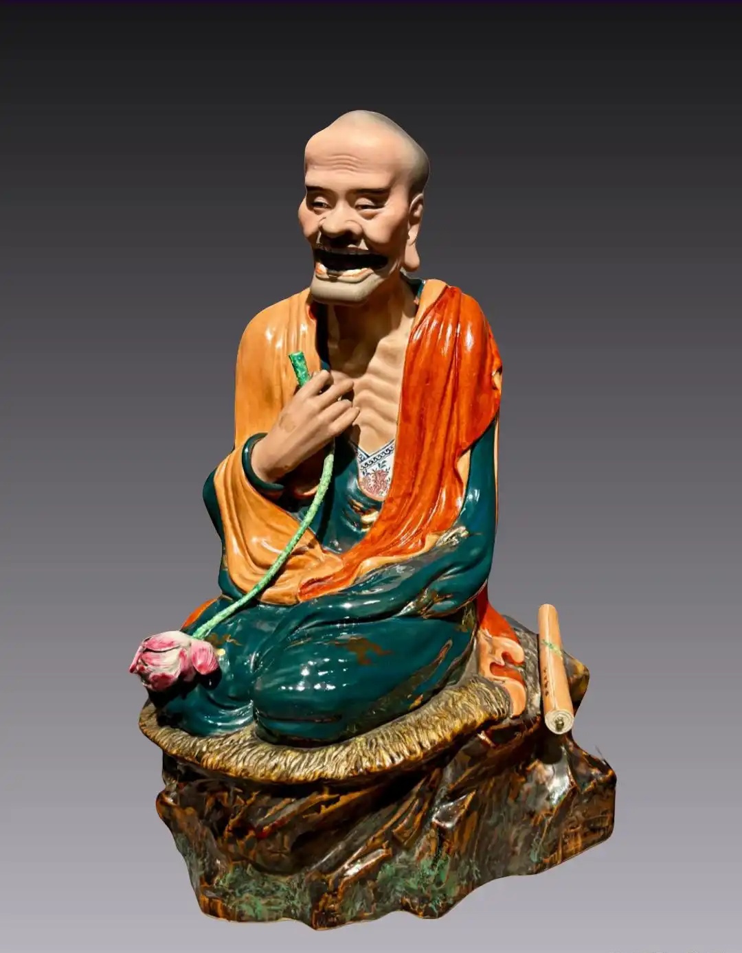 无语菩萨并不是它的真名,也不是一个真正的菩萨。它其实是一件名为“沉思罗汉”的陶瓷雕塑,是中国瓷器美术大师曾龙升的作品,《釉下加彩十八罗汉塑像》中的一件。罗汉是佛教中的一种修行者,有十八位,分别有不同的名字和特征。沉思罗汉是第十一位,他是释迦牟尼佛出家前的儿子,佛法道行在十大弟子中位居首位。他面相丰腴、眉目慈善,于冥想中静悟人所不知。它的大火要归功于网友们的丰富想象力和创造力。