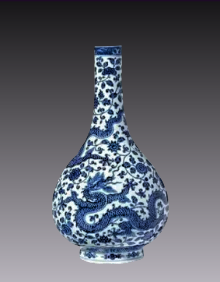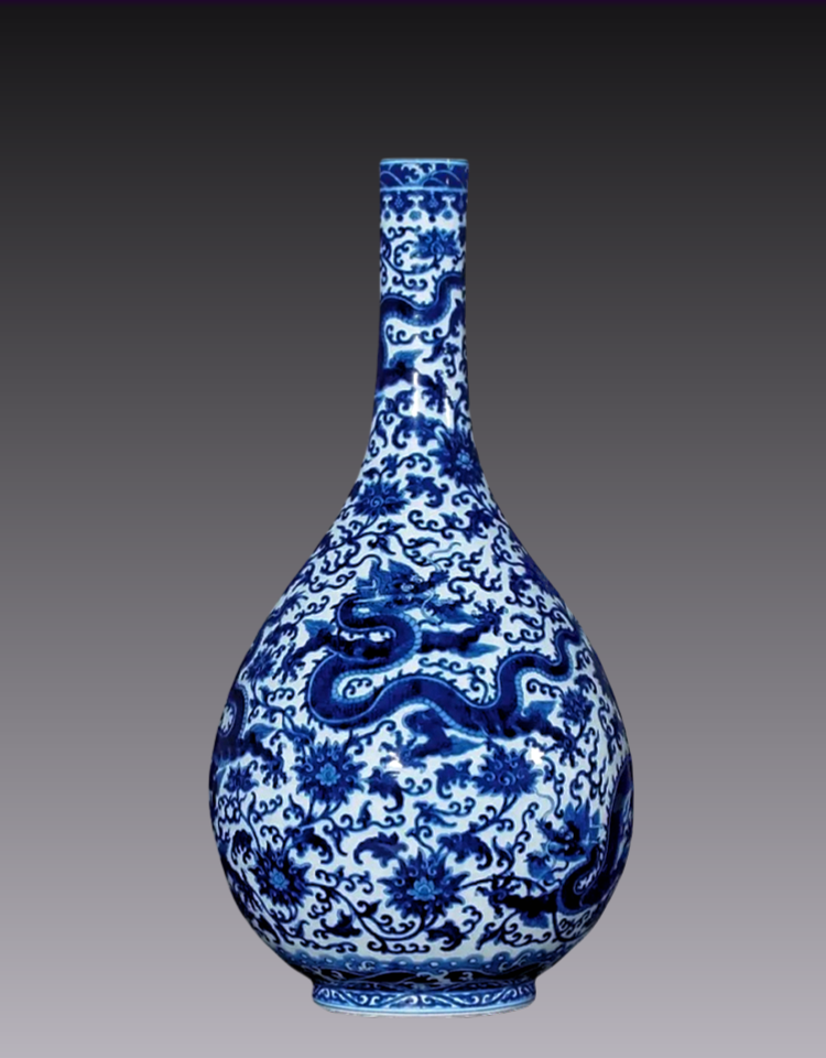 9、清乾隆青花「穿花游龙」图长颈胆瓶