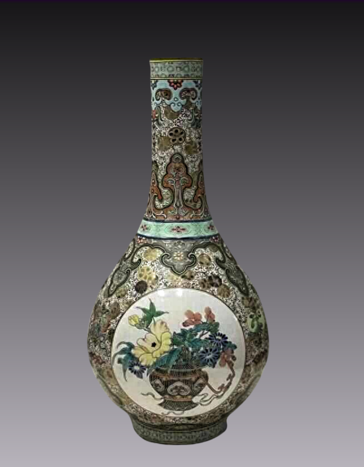 15、清乾隆七年磁胎洋彩花卉胆瓶 台北故宫博物院