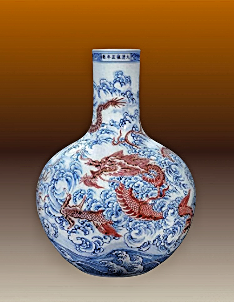 1、历年拍卖第一名 清雍正 御制青花釉里红云海腾龙大天球瓶