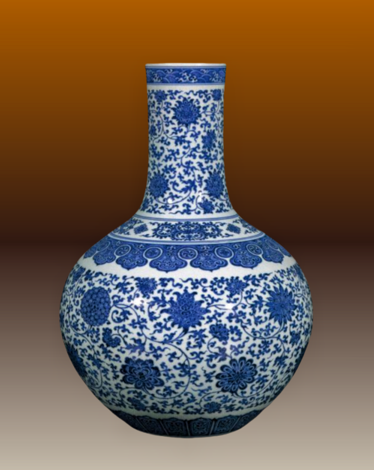 8、历年拍卖第八名 清乾隆 青花缠枝花卉纹天球瓶