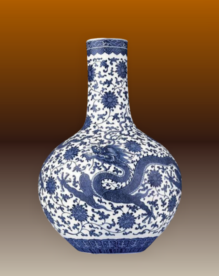 10、历年拍卖第十名 清乾隆 青花穿莲龙纹天球瓶