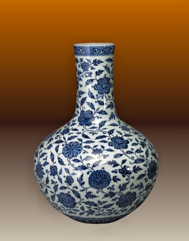 天球瓶是一款非常经典的官窑器型,造型端庄、气势宏伟,备受皇室贵族喜爱。天球瓶也叫“千秋瓶”,有象征“千秋太平”的美好含义。