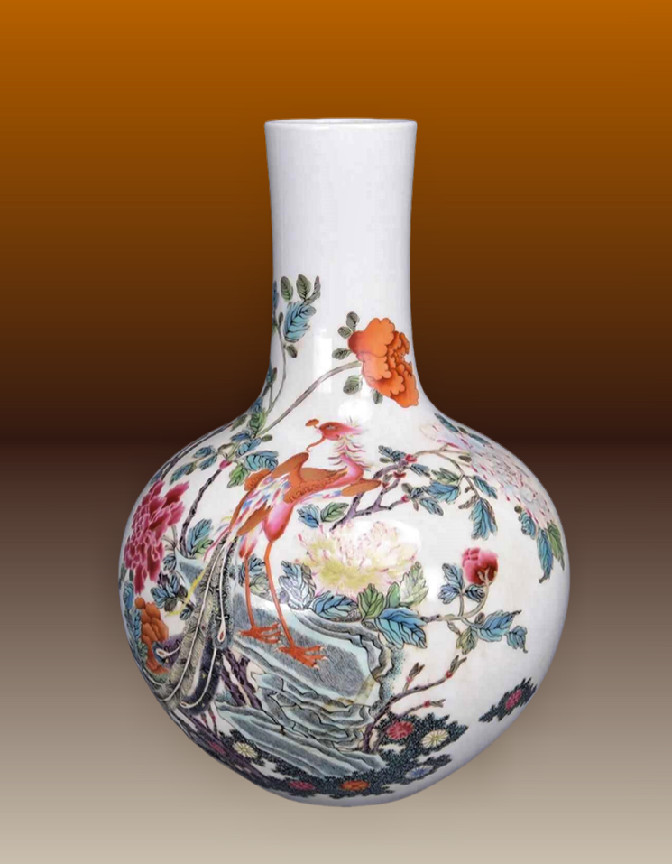 18、清雍正 粉彩凤凰花鸟纹天球瓶 格古博物馆