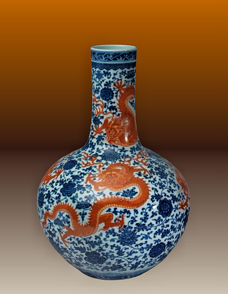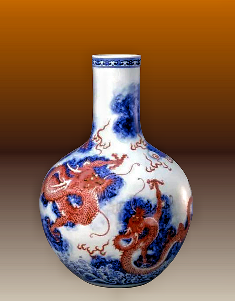 25、清乾隆 青花釉里红云龙纹天球瓶 北京故宫博物院