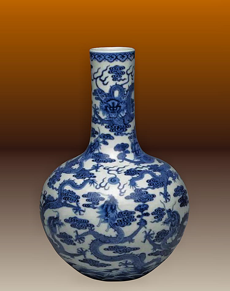 22、清乾隆 青花海水云龙纹天球瓶 故宫博物院