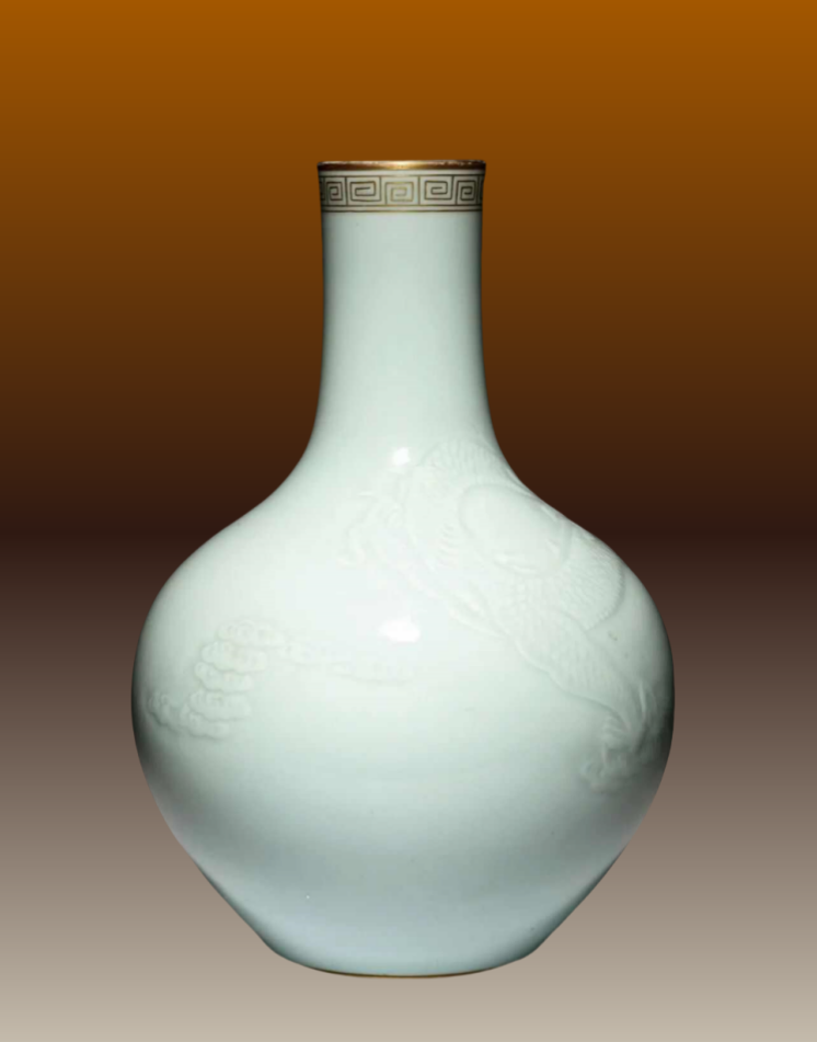 30、清乾隆 豆青釉暗刻龙纹天球瓶 格古博物馆