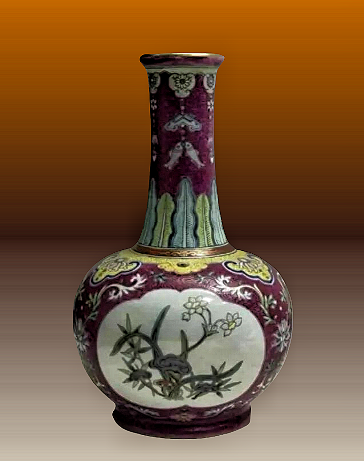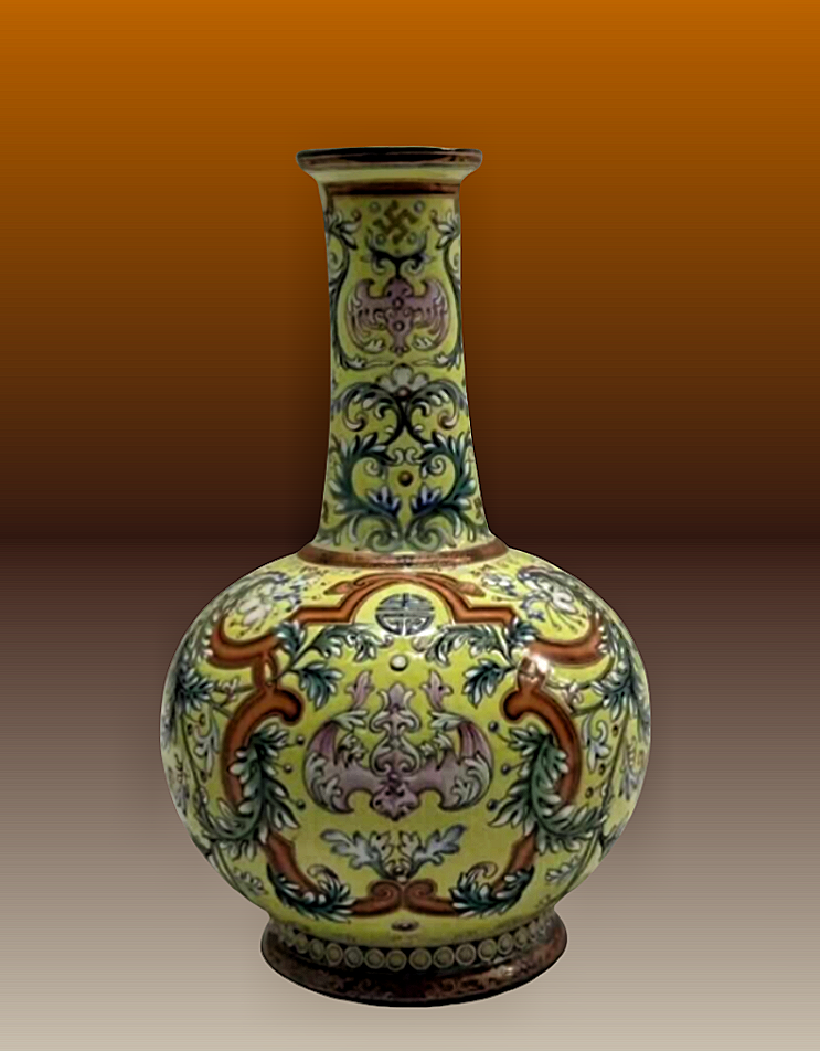 39、清光绪 黄地墨彩花卉纹天球瓶 扬州博物馆