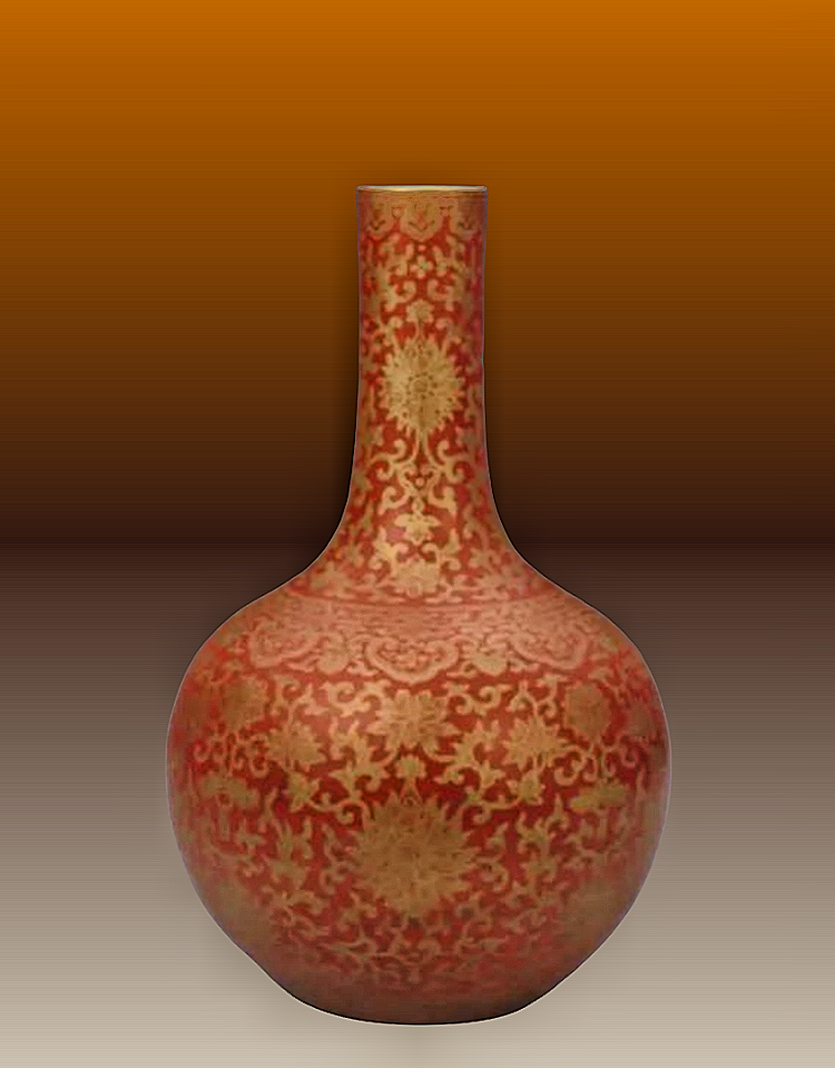 35、清嘉庆 红地描金缠枝莲纹天球瓶 北京故宫博物院