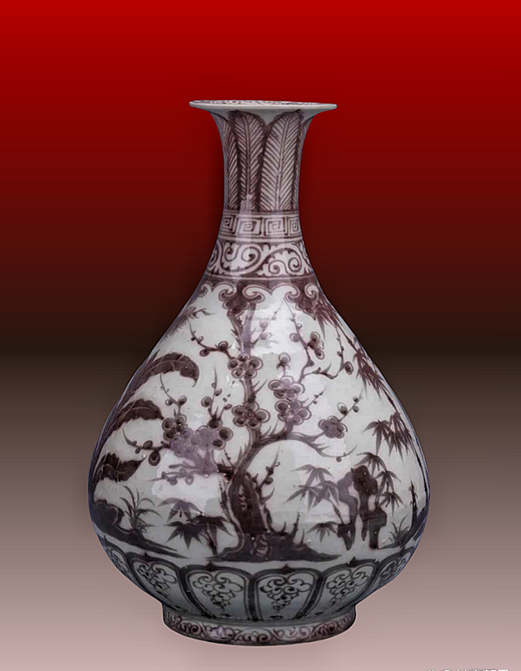 17、明洪武釉里红松梅竹纹玉壶春瓶 格古博物馆