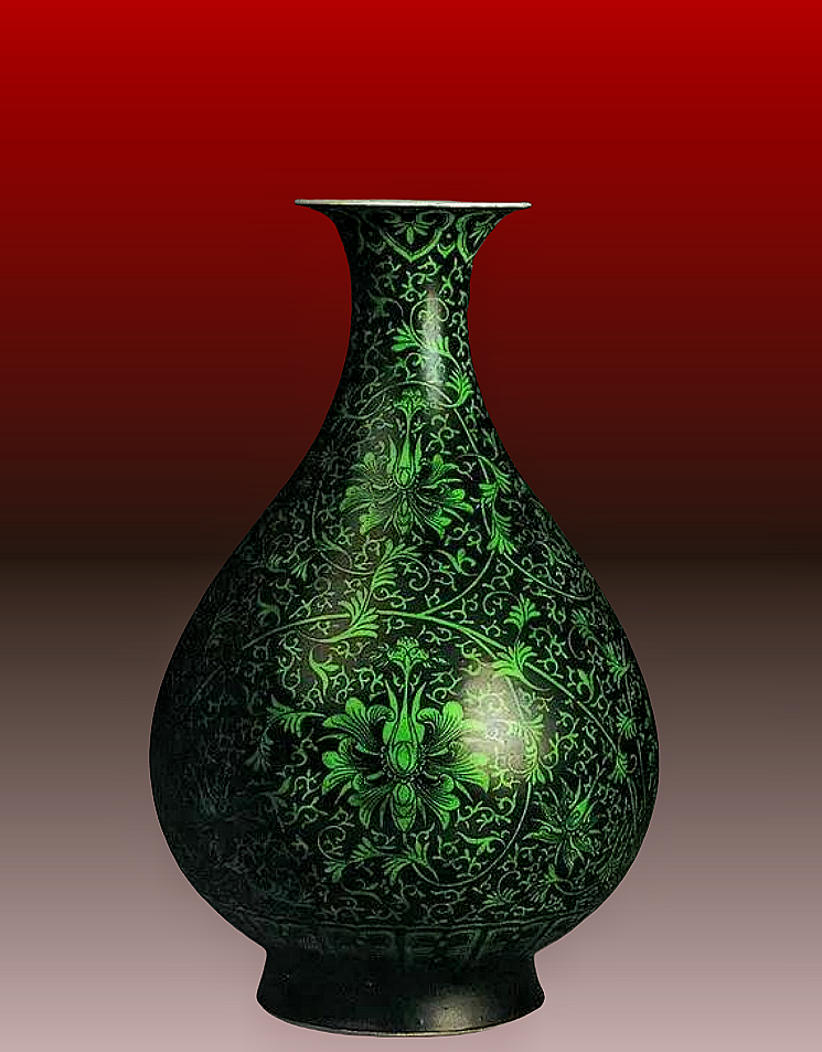 23、清乾隆黑地绿彩缠枝莲纹玉壶春瓶