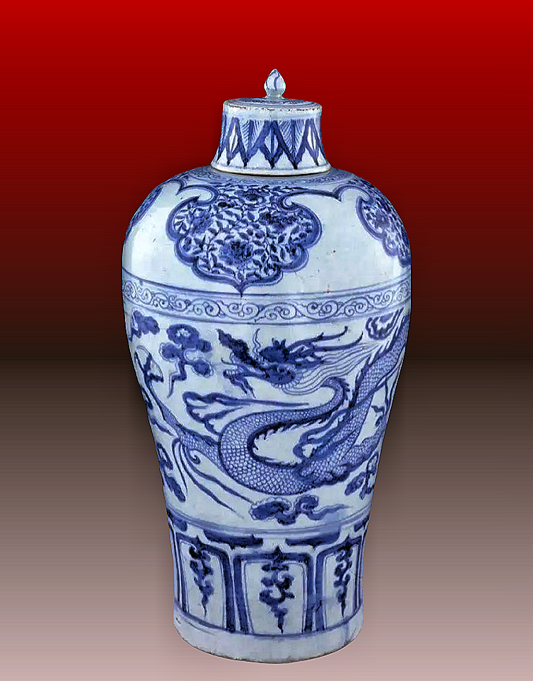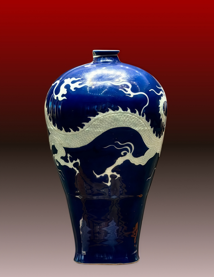 26、扬州博物馆 元霁蓝釉白龙纹梅瓶