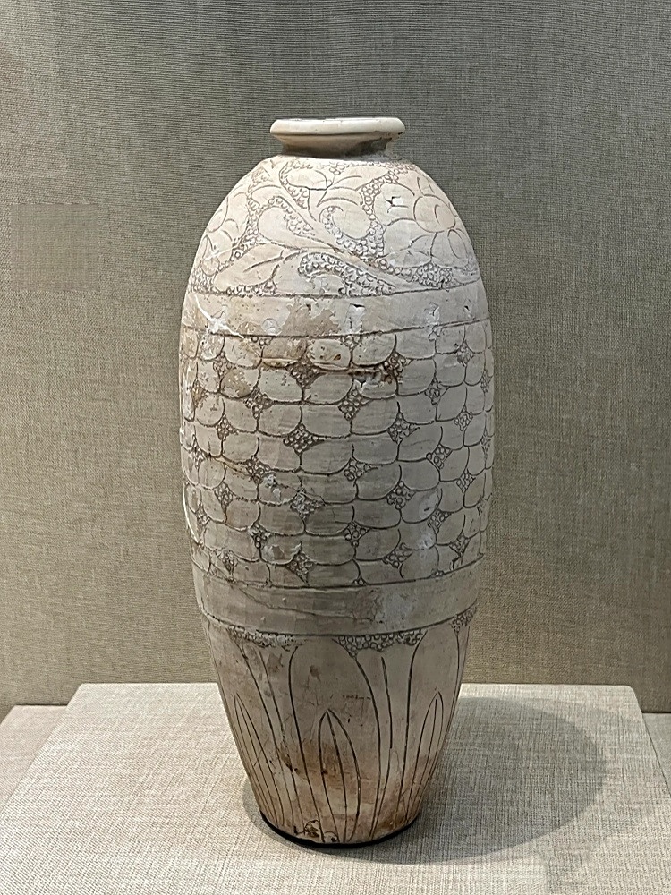 28、镇江博物馆 宋登封窑白釉珍珠地划花纹瓷梅瓶