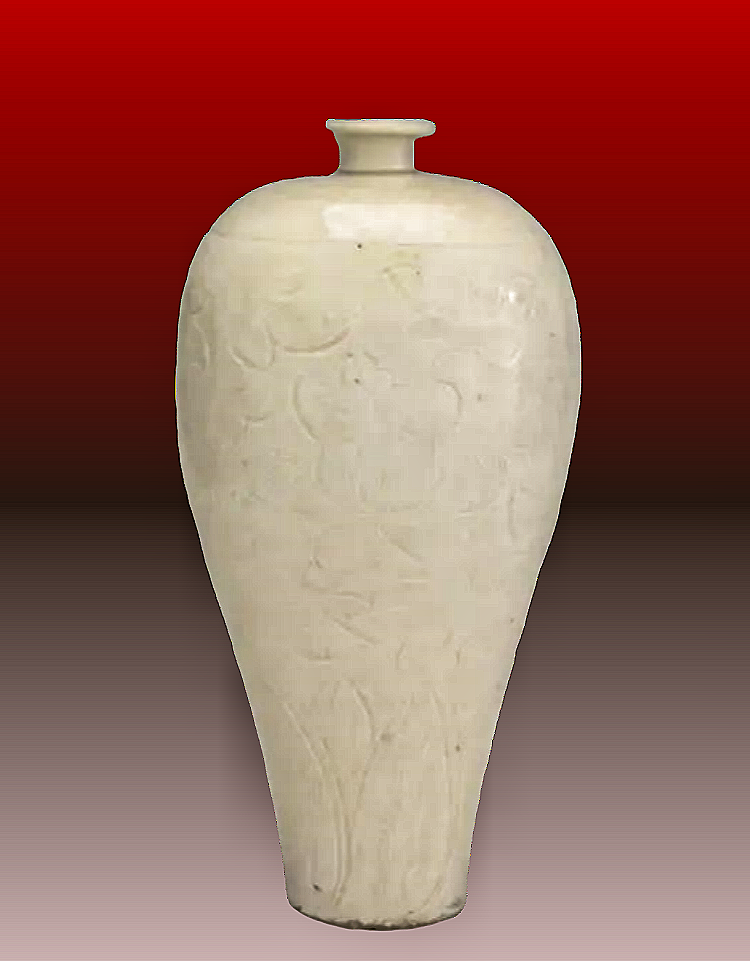 32、大英博物馆 定窑白釉刻花牡丹纹梅瓶
