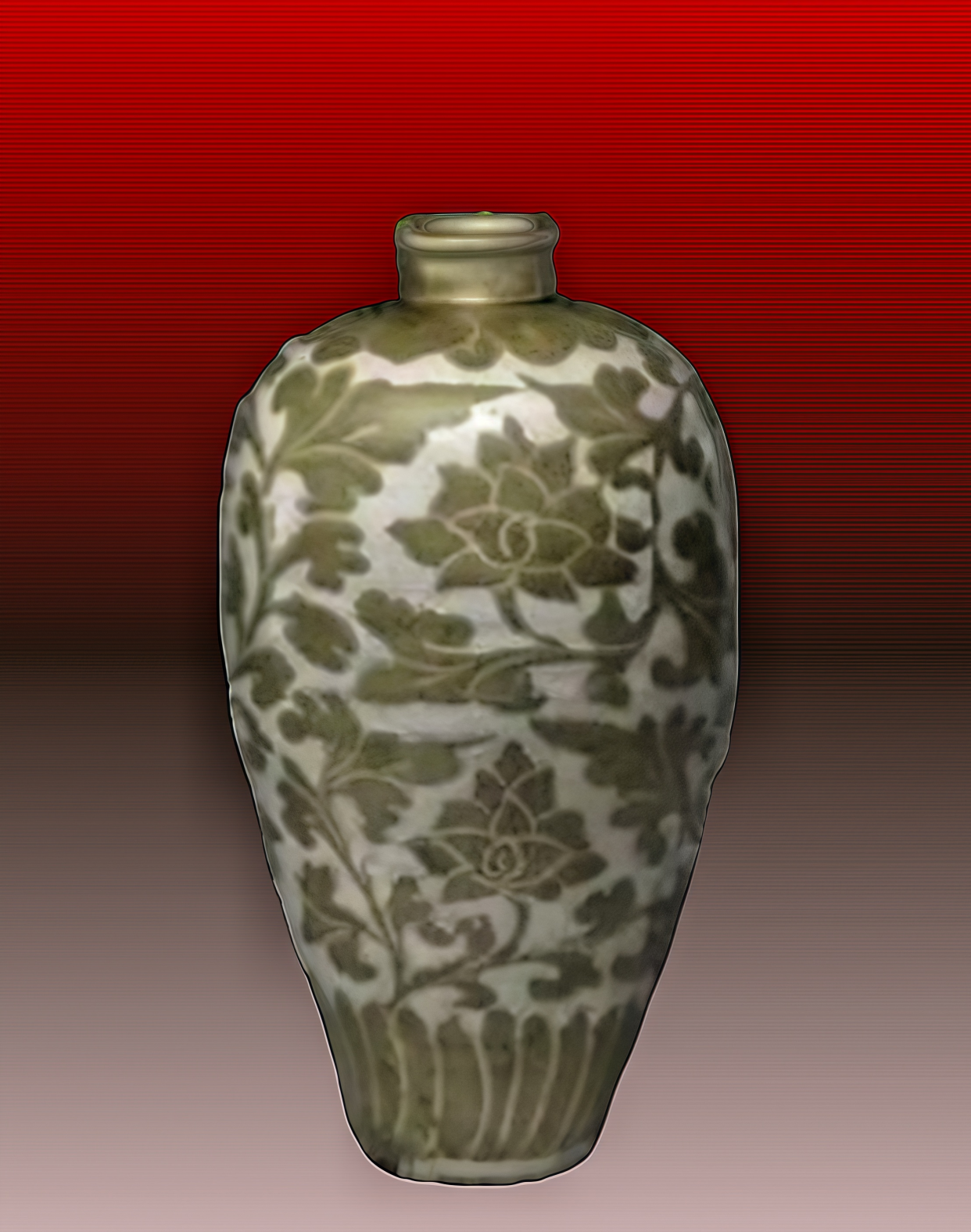 22、明永乐 龙泉青釉缠枝牡丹纹梅瓶