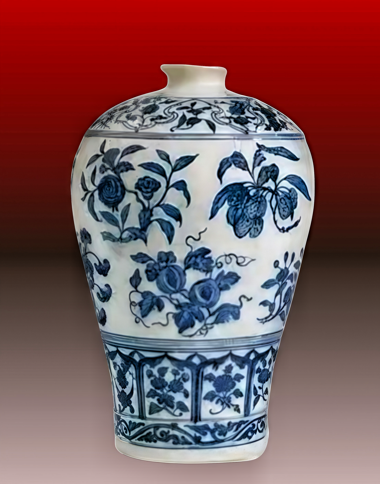 38、明永乐青花如意垂肩折枝花果纹梅瓶 海外