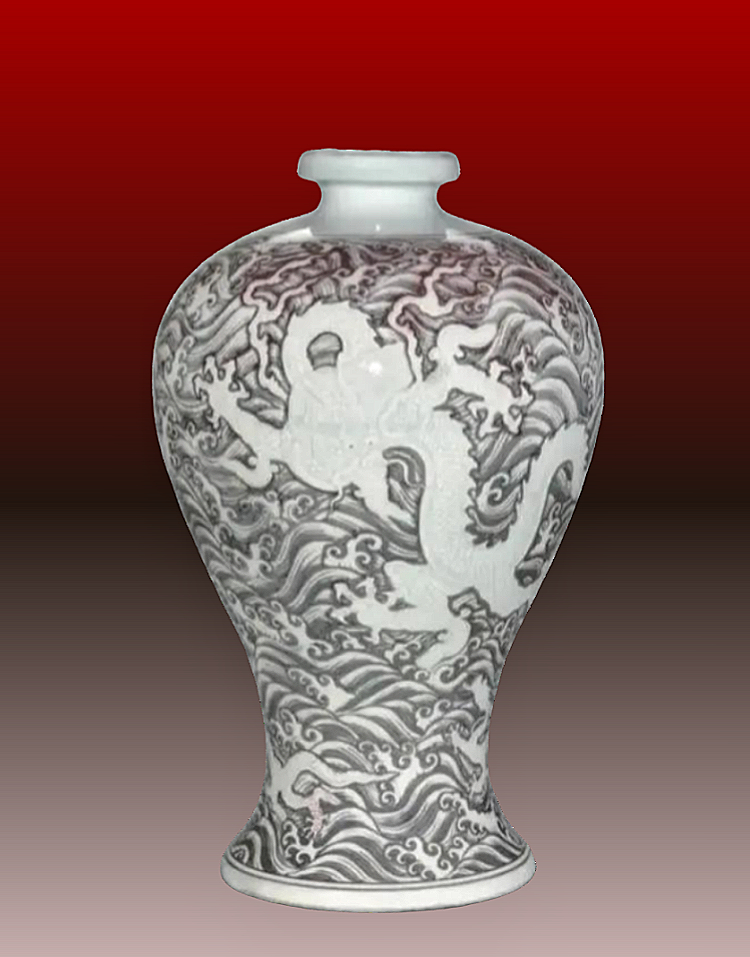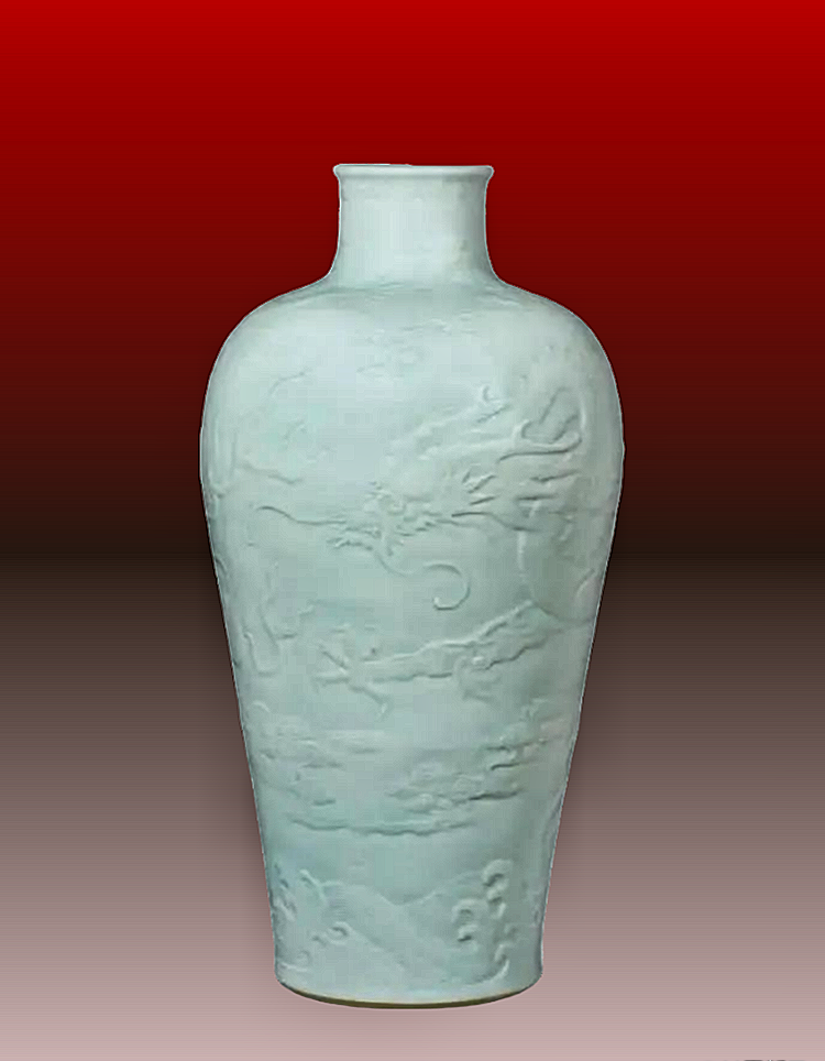 21、台北故宫博物院 明永乐青花刻蓝地白龙纹梅瓶