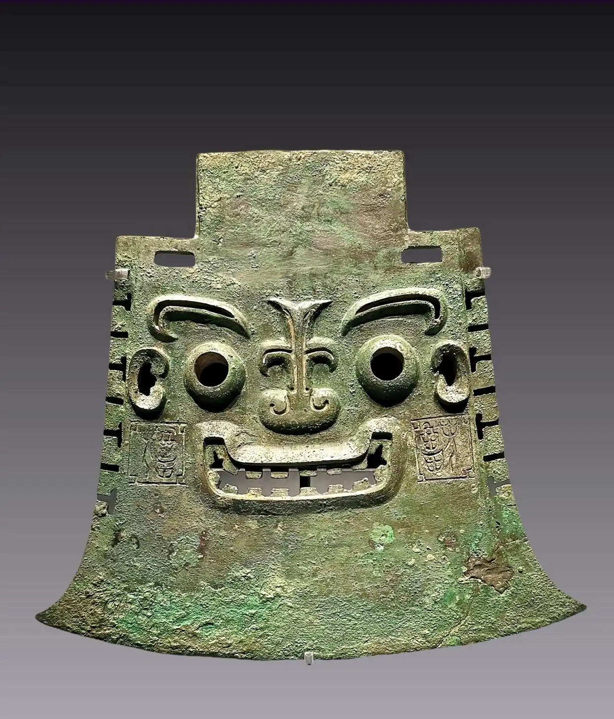 亚丑钺通长32.7厘米,刃宽34.5厘米,肩宽23.3厘米。长方形,为方内,双穿,两肩有棱,器身透雕人面纹,人面五官微突出,双目圆睁,嘴角上扬,口中露出城墙垛口似的牙齿,极富威严。因其口部两侧对称地铭有“亚醜”二字,故得名“亚醜钺”。亚丑钺在古代除作为一种特殊的武器和刑具外,更重要的则是权力和社会地位的象征。 亚丑钺是山东博物馆十大镇馆之宝之一,被定为国家一级文物。