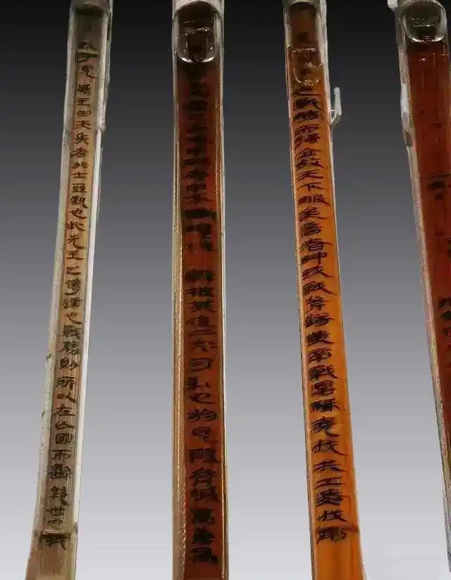 能看到好多根竹简,出土于银雀山汉墓,是新中国30年十大考古发现,与失传近两千年的《孙膑兵法》同墓出土。