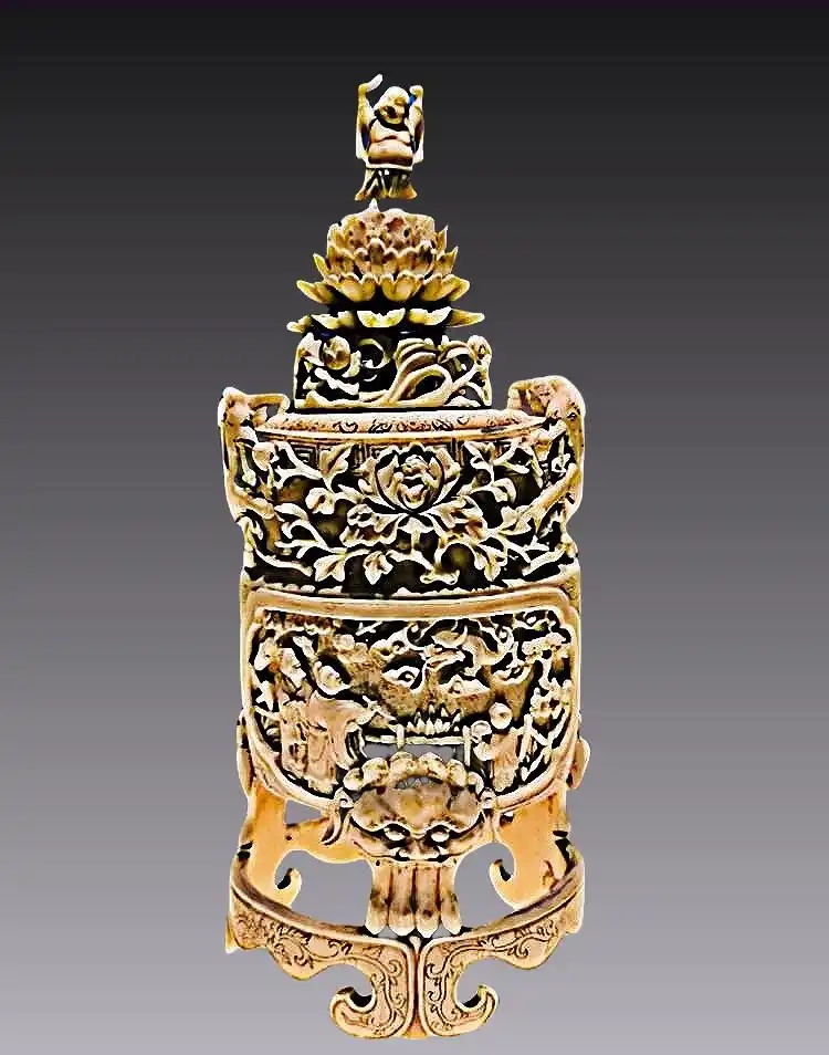 采用象牙为材料,雕刻成鼎的形状,雕刻工艺细腻,鼎身上通常刻有精美的图案和纹饰,体现了清代象牙雕刻艺术的高超水平,是清代工艺品中的佳作,具有较高的艺术价值和收藏价值。