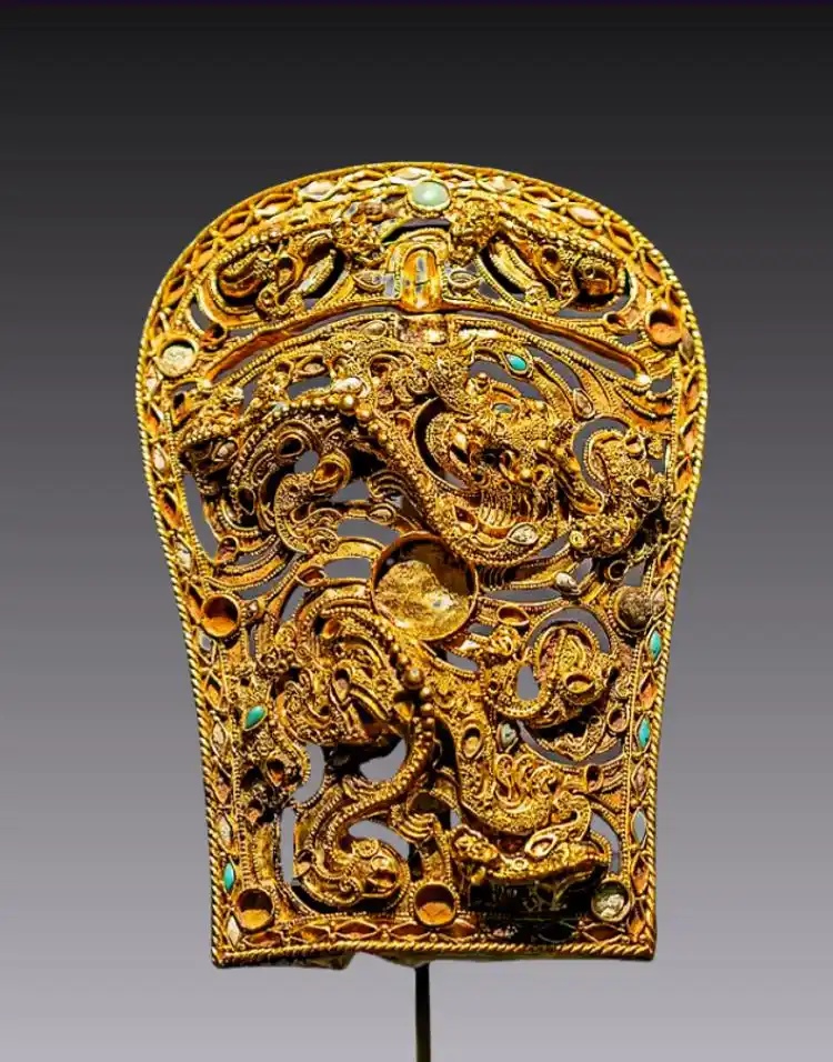 该金带扣与“元和二年”鎏金银神兽刻纹铜舟同时同地出土。东汉元和二年,也就是公元85年。据史料记载,寿县在公元87年以后曾是阜陵王的都城,首任阜陵王刘延曾经直接接受过皇帝的赏赐,并在公元89年去世。金带扣上有八条龙,仅次于皇帝的九条龙。文物专家推断,这件嵌宝石八龙纹金带扣的主人应该就是阜陵王刘延。