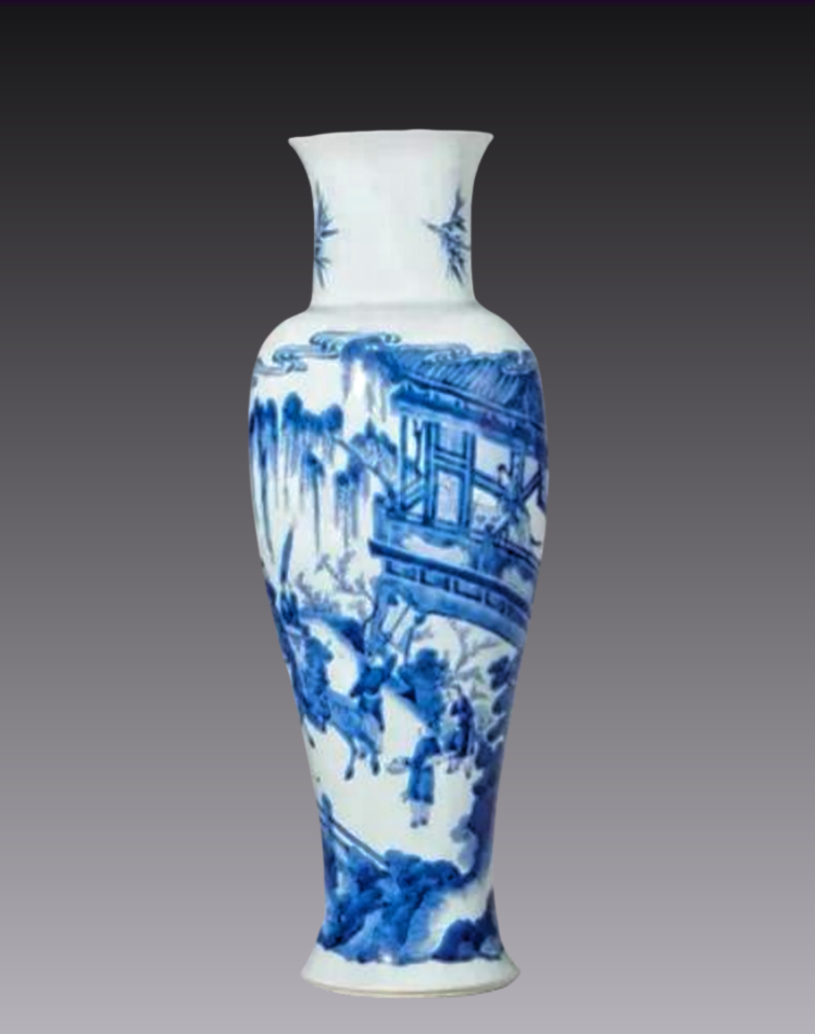 5、清康熙青花《金钱记》故事图观音瓶