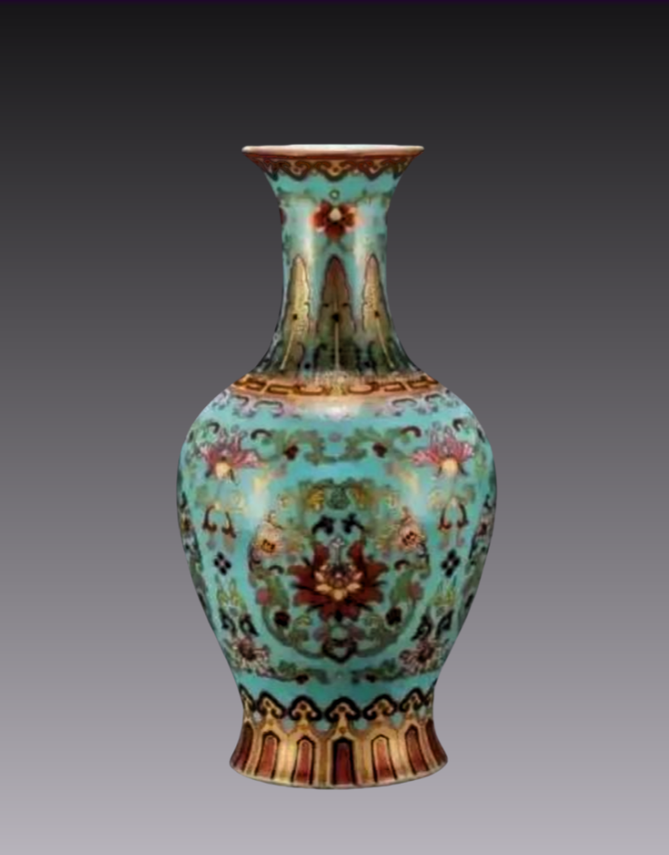 11、清乾隆松石绿描金粉彩莲花观音瓶