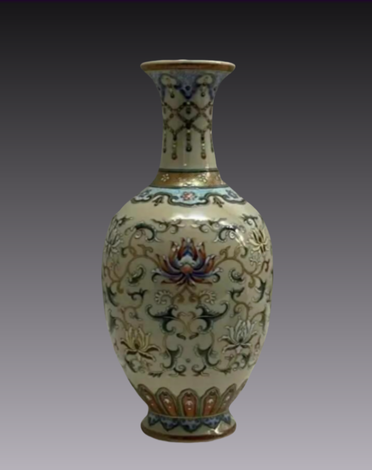 观音瓶是流行于清代康熙至乾隆时期的一种瓶式,相传为观音菩萨救世所用,所以命名为观音瓶。观音瓶特征是侈口,颈部较短,丰肩,肩下弧线内收,至胫部以下外撇,浅圈足,瓶体修长,其线条流畅温润,深受喜爱。