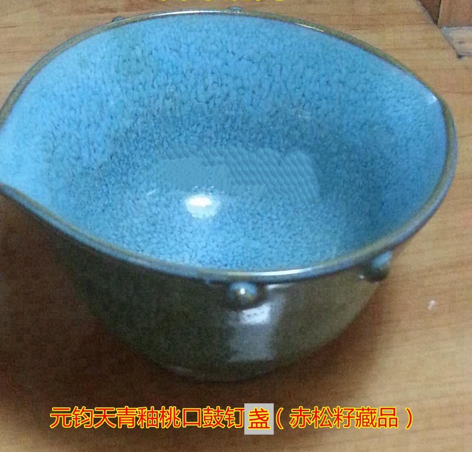1.釉色:金代钧瓷是在民窑基础上发展起来的,因此金代钧瓷体现和延续了北宋民窑钧瓷的特点,釉色以纯色或者天青、天蓝、天灰加紫红窑变斑为特征,除了无法烧造出浑漫全身的红紫、蓝地红斑等自然窑变的钧瓷器外,同北宋时期民窑钧瓷无区别,这时的窑变还能烧出大面积的紫色,但是烧不出海棠红等鲜艳色,一些精品堪比宋官钧,甚至带有“蚯蚓走泥纹”。