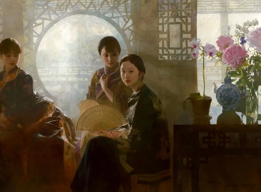 陈衍宁的画,总是透着特有的东方韵味。温婉却不张扬,娴静又极具冲击力。他创作的檀香扇系列,更是被西方评论家盛赞:“真正跨越了文化与历史,呈现了永恒的美感。
