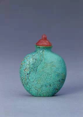 28.绿松石山石花卉鼻烟壶 清