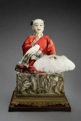 46.铜镀金染牙箱童子风扇 清中期