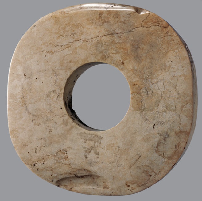 璧是良渚文化最有特征的玉器之一,在大墓中经常与琮、钺等构成固定的玉器组合。《尔雅·释器》载:“肉倍好谓之璧,好倍肉谓之瑗,肉好若一谓之环”。这里的“肉”与“好”分别指代玉器的实体与中心孔。良渚文化的玉璧多为规整的圆形,中心孔径小于器体,在璧类器物中比较典型。除了礼器功能外,璧还是权力、财富和地位的象征。良渚文化的反山墓地,大墓内玉璧最多可达数十件,它们与其他玉器分置于墓主身上不同部位,玉器功能十分强化,显然形成了系统的使用制度。