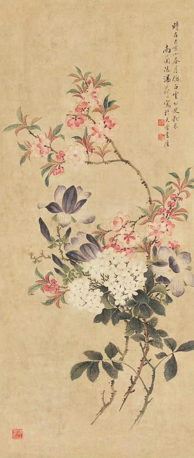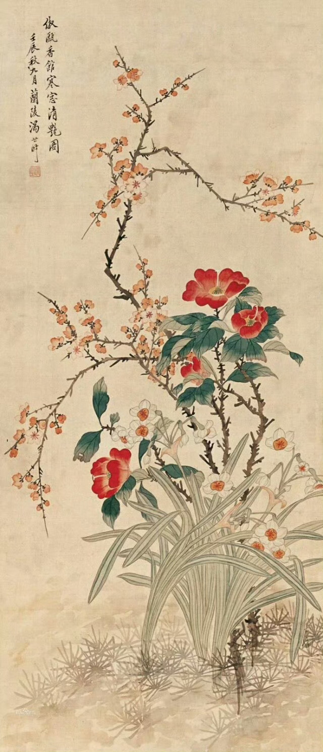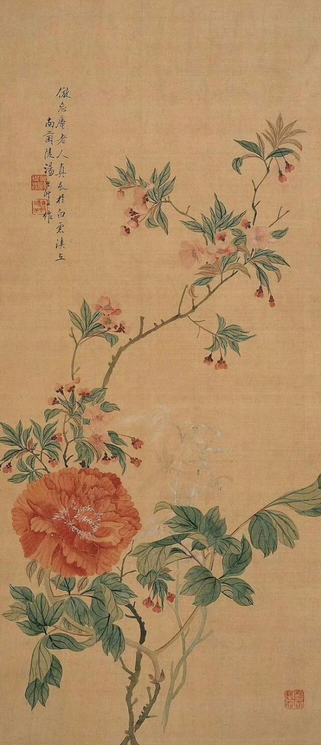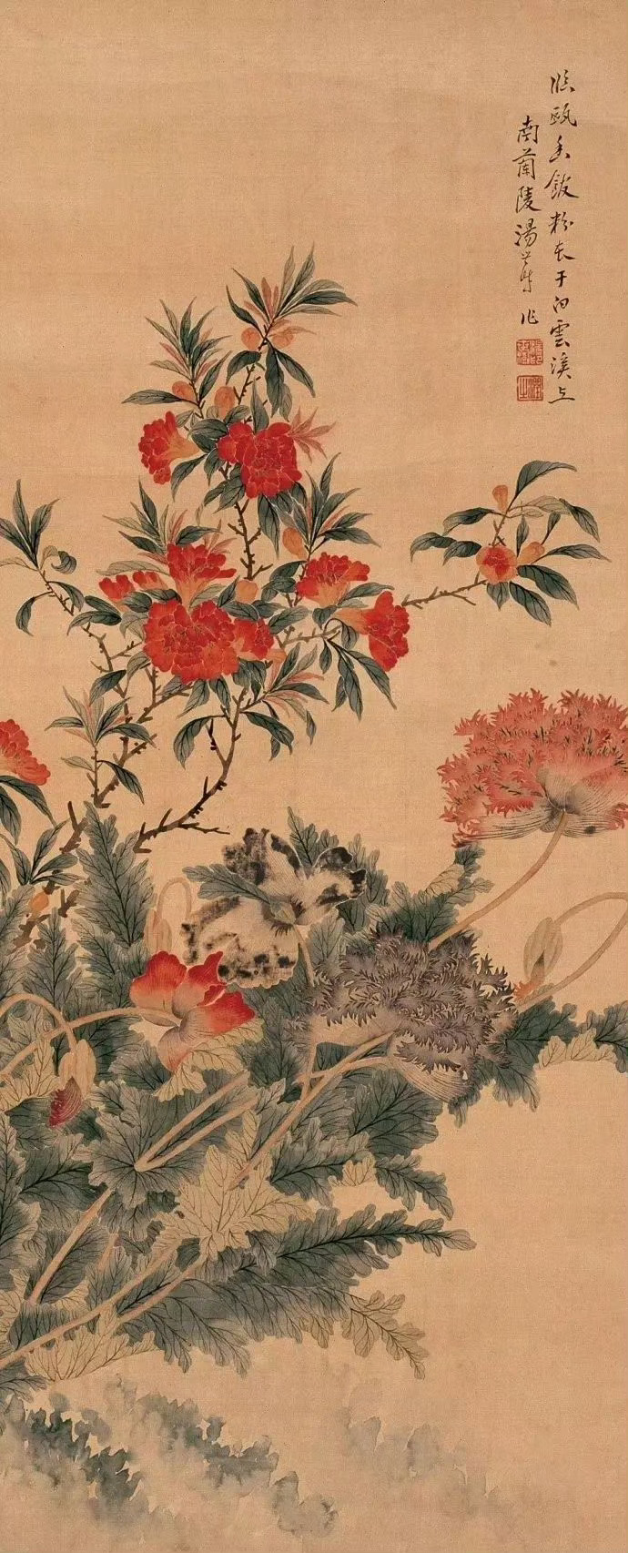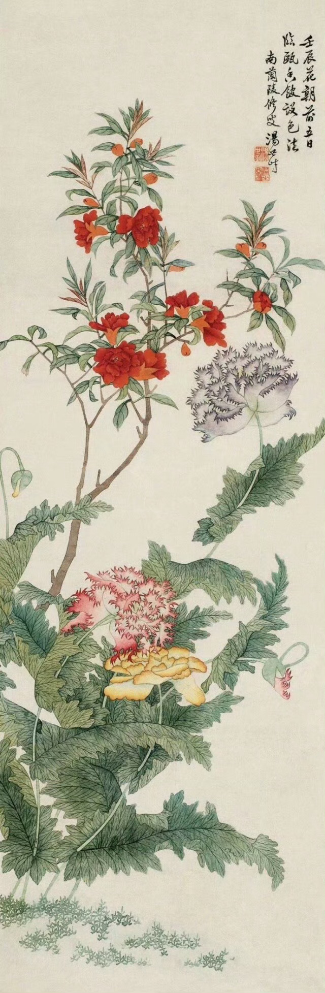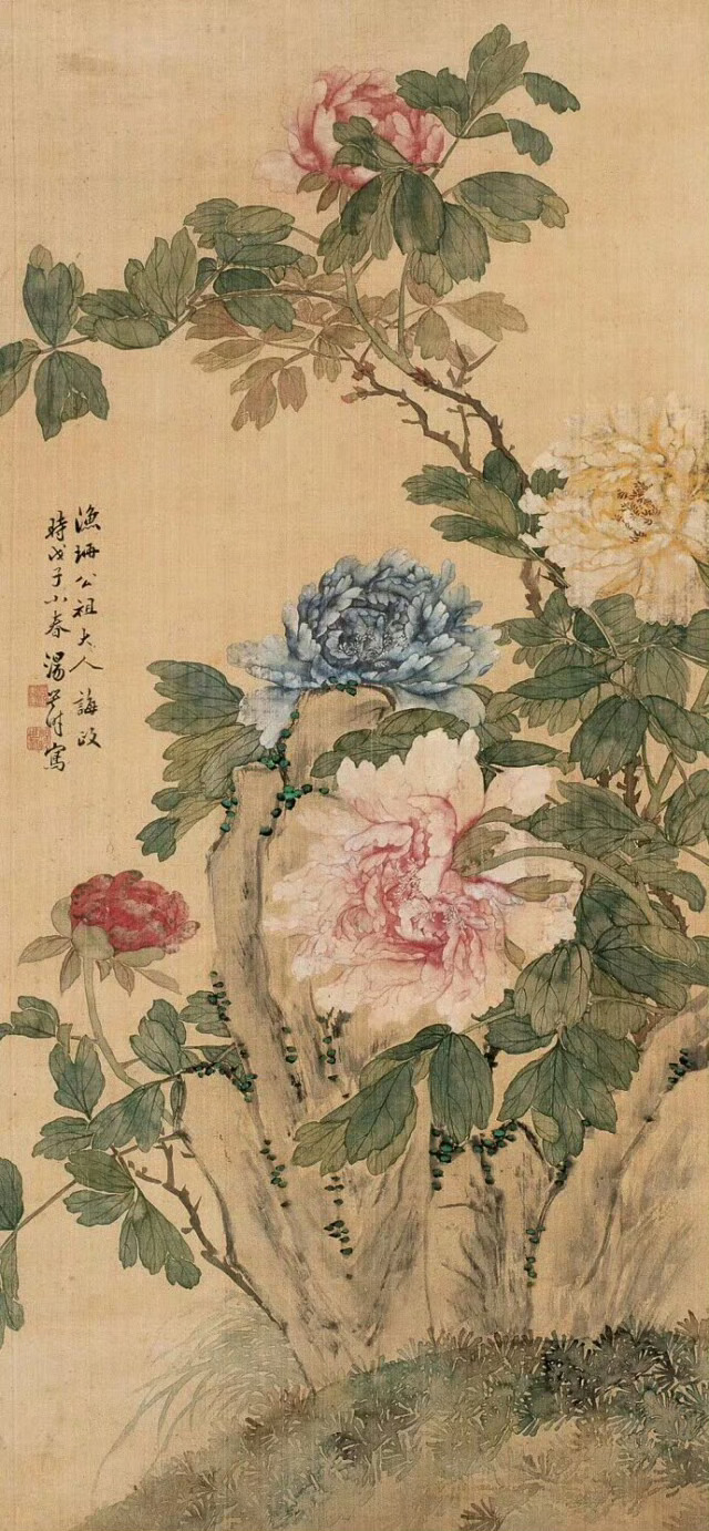 汤世澍(1831—1903)字润之,晚号修叟,别号春雨楼主。武进(今江苏常州)人。汤贻汾曾孙。国子监生,家学渊源,工花卉,鲜丽无比,书工米芾,题识精美,比之古人三绝。年逾古稀犹点笔不倦。光绪二十年(1894)进所绘百花屏九帧,为慈禧太后所赏。卒年七十二。