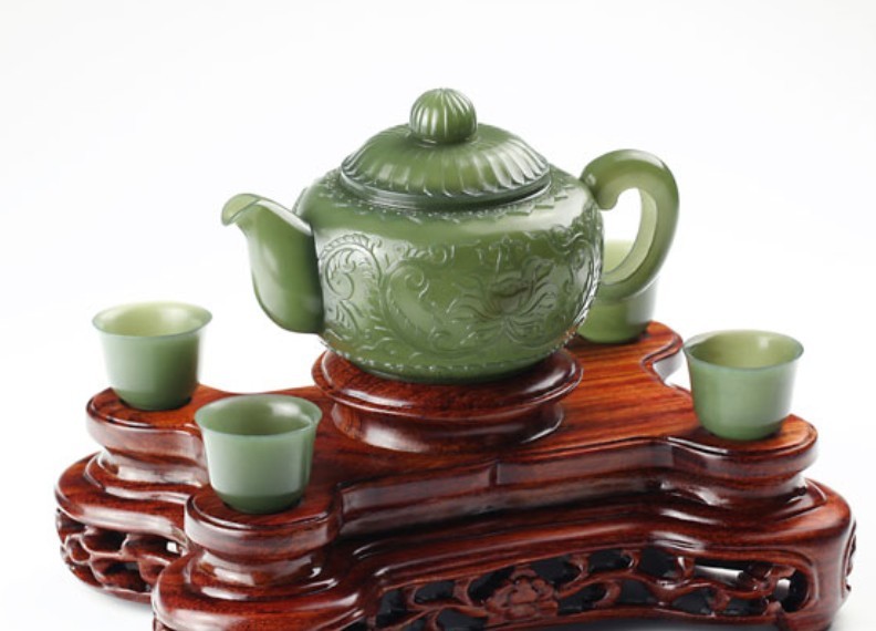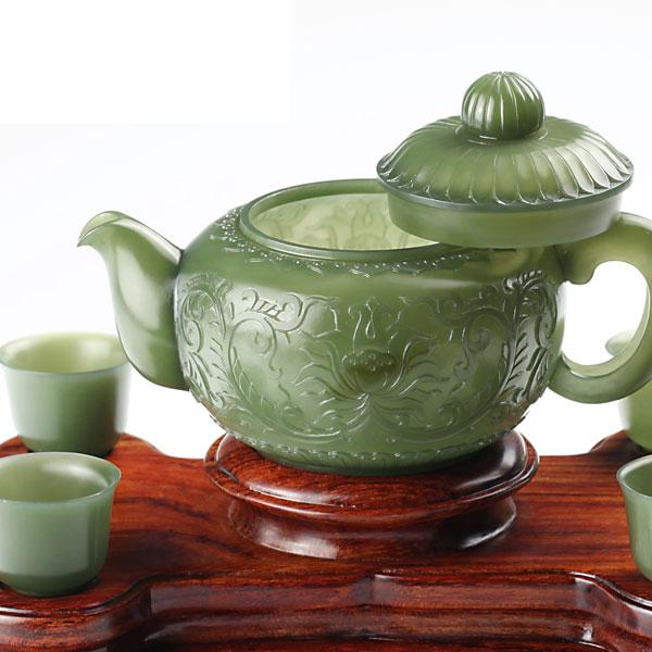 青玉-缠枝纹饰薄胎套壶