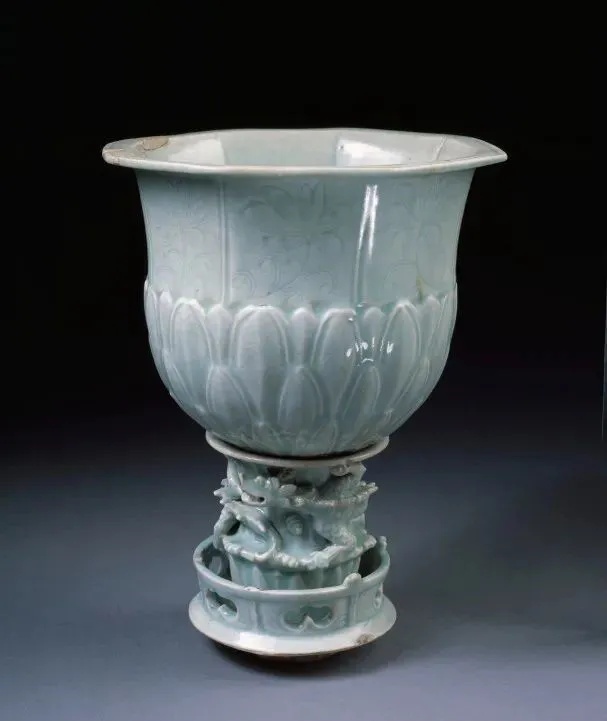 南宋 影青堆塑龙纹镂空刻莲瓣纹八方行炉