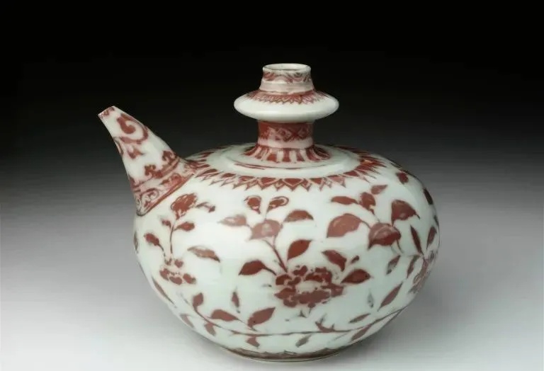 明洪武 釉里红缠枝牡丹纹军持