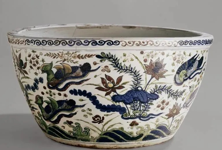 明万历 五彩鸳鸯莲纹缸
