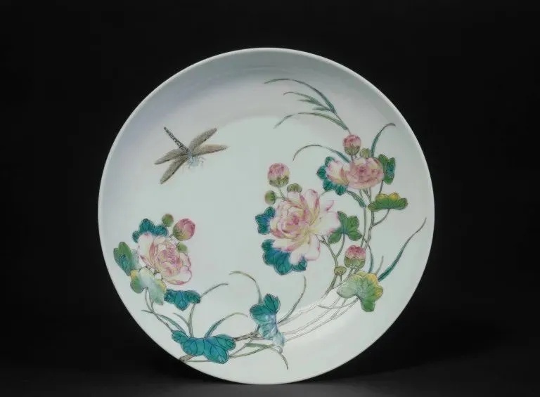 ▼清乾隆 粉彩蜻蜓花卉盘