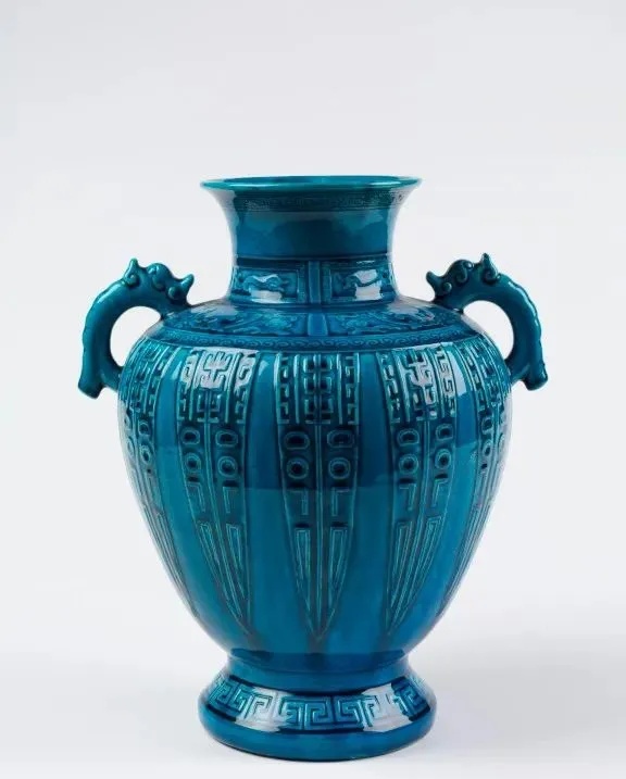 ▼清乾隆 孔雀蓝釉仿古铜纹尊