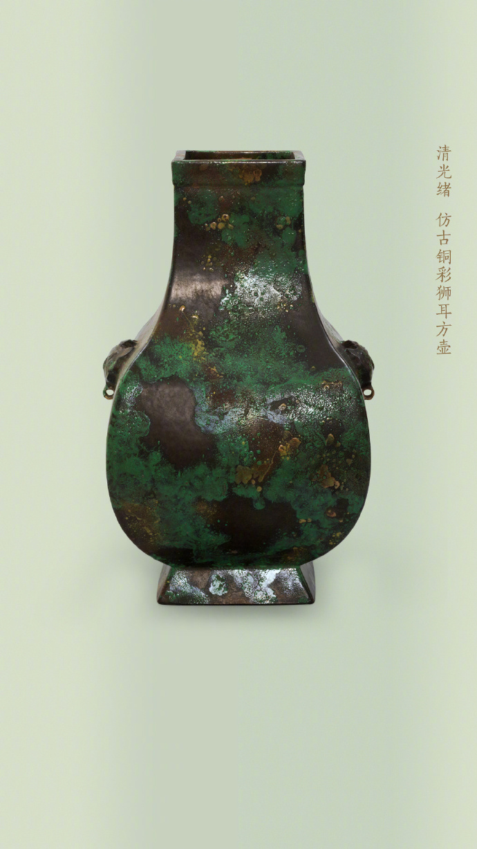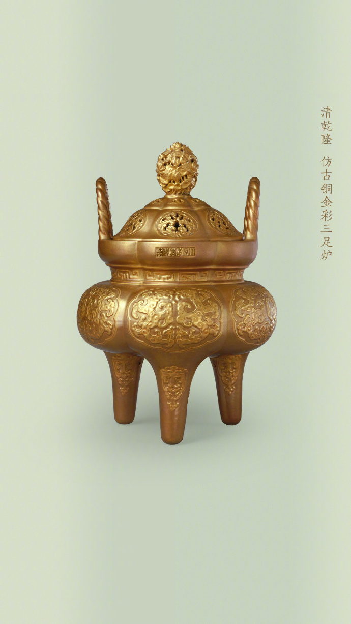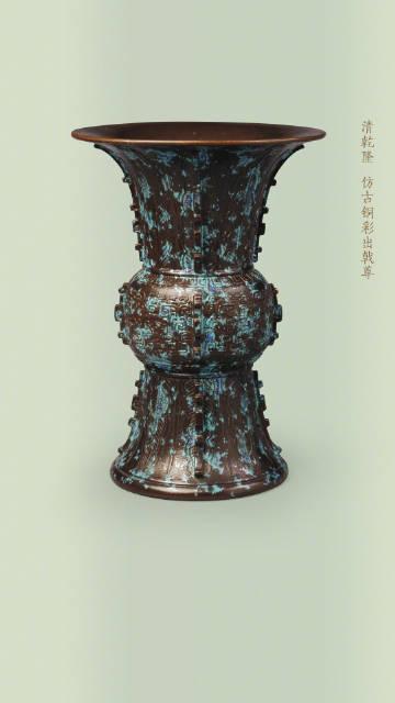 鼎、觚、炉、尊等本属于商周青铜礼器的造型,被清代工匠“复刻”到了瓷器上,温润柔和的陶瓷材质,也被赋予了青铜的威仪气质。这种以仿青铜器型为代表的“仿古瓷”,在造型设计上追摹上古礼器,常见于乾隆朝,器形规整对称、稳重大方,承载着礼制与正统的象征意义。