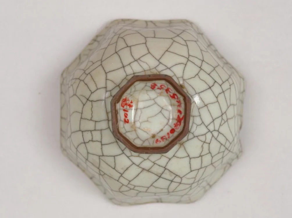 此哥窑八方碗,为宋哥窑器物中的珍品。本器物口径仅7.8厘米,可能是茶器、食器混用;