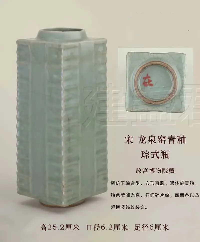 琮式瓶,方身圆口、有底部、口缘突出,是南宋龙泉窑特有的器物造型。