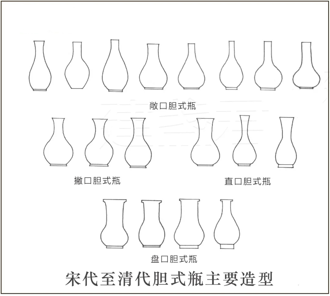 宋代流行各种款式的胆式瓶,至清代胆式瓶样式多为直口式。